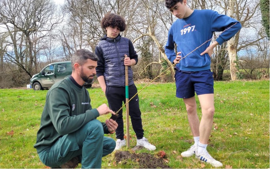 Les jeunes ont participé à la plantation de haies sur les berges du Joos.